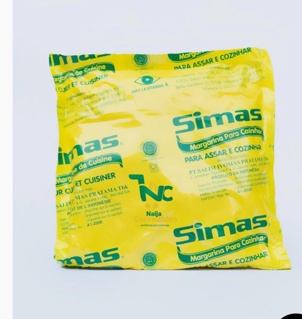 Bring delicious taste and perfect texture to your cooking and baking with Simas Cooking Margarine, a trusted household favorite across Nigeria and beyond. Known for its smooth consistency and rich flavor, Simas is ideal for frying, baking, spreading, and enhancing all your favorite recipes.